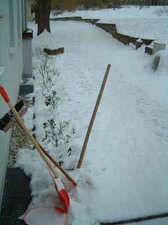 ある意味意気投合、電子回路のソフトウエアシミュレーターを二時間近く一緒にいじってた(笑) しっかし、母上とは話が続かない、言語能力もさることながらどうにも話題が・・・(涙) とにもかくにもドイツにいる間は週に一度、ここで洗濯という重大ミッションがあるわけで 逃げ出すわけにはいかない。 しっかし、こりゃ次回からが思いやられるですよ、おおおぉぉ。 - 雪かき当番 - ここドイツに着てから雪が降りっぱなしである。 雪が降ると、雪が積もる。 雪が積もると、道が雪で覆われる。 するとどうだろう、アパートの持ち回りで雪かき当番が回ってきた・・・。 ![]() こういうものは、かなりの早朝か前夜のうちにやるものらしい。 が、自分達はゆっくりおきてしまった・・・。 アパートの玄関前はよかったものの、表の歩道部分の雪が凍ってしまって もう、どうにもこうにも・・・。 最後は力の限りに、意地で突き進んでた。 ということで、雪かき(氷除去ともいう)終了!!