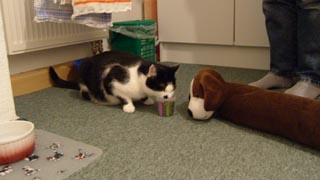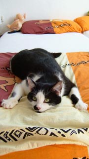 はっきりいって洗濯より食事が自分のなかではメインだったりする(笑) だってママさんの料理とってもおいしいんですもの。 ![]() ![]() ところで、まったく話は変わるが友人宅にはネコがいる。 冬の間だけ室内で越冬させるらしい。 で、このネコ、なんとすごく頭がいい。 なんと、字を書くのである!! ![]() まぁ、正確には人が字を書いてると寄ってきて鉛筆横取りしようとするだけなのだが・・・。 ついでに、いかにも自分のものと言わんばかりに人のベットにデーンと鎮座するしぃ。 ![]() あなどれない奴だ・・・。 | ||