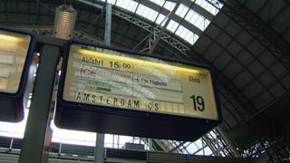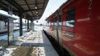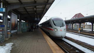 - 最終日 - あっと言う間に最終日、寄り道もせずまっすぐ家まで帰ります。 朝食の後、近郊列車でケルン中央駅へ。 前日の天気予報では全国的に雪だと言っていたのに、その気配全く無し。 普通列車で乗り継ぎ時間九分、ついでに案内板で確認すると ここから中央駅まで行く普通列車とと特急の到着ホームが一緒。 移動しなくて済む! と喜んでいたのだが、ドイツの鉄道、実際到着してみるとホームが案内板と違ってた・・・。 自分が乗るべき特急のホームまで急いで移動。