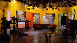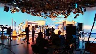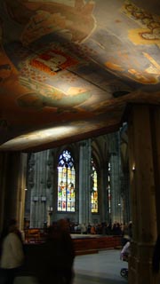 町一望、おぉ。 大聖堂もバッチリ。 つづいてスタジオも見学に挑戦。 かつての同僚なんかが多数いたらしくどこでも挨拶と雑談。 ついでに、撮影中のスタジオをみて良いことに。 ![]() なにやらスポーツニュースのようです。 クレーンカメラを多用してました。 テレビ局見学終了。 再びドームへ。 今度は内部。 ![]() やっぱり大きい・・・。 大きすぎ。 その後は橋を渡ってしばらく散歩。 ![]() ![]() 旧市街で食事。