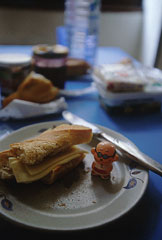 朝食の後、撮影のため街に繰り出す、どんどん撮るですぅ! いやはや、フィルムはやっぱいいですなぁ。 レスポンスというか道具としてしっかりした感触で 応えてくれるとでもいいますか。 んで、ひととおり撮影で街を流した後にふたたびアパートに戻って昼食。 鍋から直接食べてますぅ(笑) そしてお次は昨日満員で見れなかった映画を見に行く。 今度は無事にチケット購入。 ところで、学生料金に年齢制限がついてた。 でも生年月日なんて殆ど確認しないだろうと踏んで ちらりと国際学生証を見せて無事に学生料金適用(笑) 映画の内容は、とある女性画家の生涯。 国籍および名前忘却した。 なかなかにインパクトのある画を書く人でござんしたわ。 ただ、個人的にはパステル調の絵よりも 日本の絵に多い渋い色使いのが好み。 この辺、デジカメとフィルムの色調に似てるかも。 ま、フィルムも種類もしかり、海外と日本じゃ色調が違うけどね。 (不思議なことに海外だとフジを例に取ると velvia, provia 系よりもsensia, astia 系が多い。 それでいてkodak はdyna highcolor・・・。なぜだ・・・) いぢょ♪