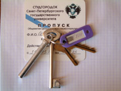 ----------- - 寮 - 部屋の窓は当然二重窓。 ちなみに窓枠は防寒性を考慮して木製。 ![]() 部屋の共同部分はこんな感じでっす。 キッチンとバス・トイレが付いてます。 ![]() ちなみに外から入るには入り口で係員に証明書を提示し 自分の住む階についたら電子ロックを開け 次に自室の鉄の扉、普通の扉を開け、最後に自分の部屋の 扉を開けてやっと到着となりまーす。 ということで、入寮するとこんな鍵と証明カードが手渡されます。