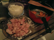 ----------- - 今月の料理 - 機内食 暇だったので機内食風に盛り付けた料理。 ![]() って、違う!これは日本行き飛行機の機内食ぅ。 酢豚 さぁ、得意料理の一つ、酢豚でっす! ![]() にんじんを下茹でしたり豚肉を油通ししてみたりとちょっと手間掛けてみました。 日本語教室の生徒にも受けの良かった一品。 生姜焼き 言わずとしれた生姜焼き。 手軽で美味しいですわぁ。 イタリア人ルームメイトが来た時も作ったが、いたく気に入った模様(笑) ![]() ナス ナスがとても食べたくなって炒めて醤油を絡めて見た。 ちょいとこげてしまったが、うまかった。 ![]() スパゲッティー各種 トマトソース・ナス入り、和めんつゆテイスト、適当に炒めたの。 ←月桂樹の葉っぱもいれたよ♪ ![]() 後半に続く。 |