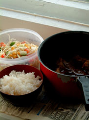 メニューは、天才シェフM氏による、カレーペーストから作るカレー。 しかし困ったことにこの部屋にはテーブルとなりそうなものが全く無い。 机は大きすぎてベットの間に入らないし・・・。 ということで、板を探しに寮内に。 するとどうだろう階段の途中で通風口を塞いである板が・・・。 テーブルにうってつけではないですか(笑) ちょっと借りまーす♪ そしてカレーも出来上がり、いただきまぁす! ![]() おいしいでっす。 ロシアも残すところ十数時間となりました。