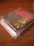 ----------- - バス故障 - 学校の帰り、いつもと違う番号のバスに乗ってみた。 するとどうだろう、きづずいた時には全然知らない通りを進んでいた・・・。 ルートは違うけど一応目的とするところは通るので心配ないのだが。 なんて思って安心していると、しばらく走ってバスが止まったまま動かなくなった・・・。 そして運転手が一言「故障」と乗客に告げた。 あの・・・、ここどこ・・・。 しかたありません、ゾロゾロ降りる乗客につづいて自分も降りる。 で、みんなの向かう方に歩いていくことに。 しばらく歩くと見慣れた地下鉄乗り場が見えてくる、よかった、これで帰れる(安堵) と、ちょっとだけスリルなバスでした。 帰りがけにCD をたくさん買ってみた。 ケースは荷物になるので廃棄! 圧縮完了!