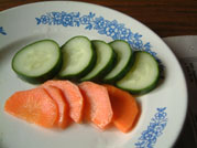 ----------- - 今月の料理後半 - 鳥コーラ煮 毎度、鳥のコーラ煮っす。 ![]() ペリメニ焼きバージョン ゆでるのが普通のペリメニ。 やってできないことはなさそうだったので焼いてみた! 餃子と一緒っすよ、えぇ(笑) 普通に焼きあがります。 ![]() マカロニ まだ、マカロニ余ってるぅ・・・。 ってことでテキトーにゆでて炒める。 ![]() 開化丼 豚肉があまったいたので親子丼風にしてみました。 ロシア人もイタリア人も気に入ってくれた。 ![]() 番外 ところで、ここロシア、ピクルスがすごく美味しいです。 日本やその他の国に居た時はあまり好きではなかったのですが ここのは、とっても気に入りました。 ということで、真似して自分でも作ってみました。 ちょっと、味薄いねぇ・・・(笑) ←おまけでにんじんも漬けてみた。 |